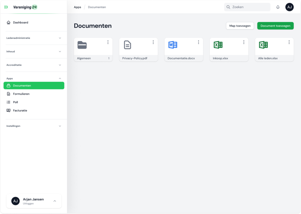 - Deel mappen en bestanden Hele mappen of slechts een bestand is te delen met leden van de vereniging